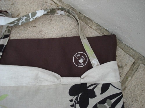 J’ai ajouté un tampon brodé “fait main” en broderie machine pour bien souligner le caractère artisanal de ce sac.