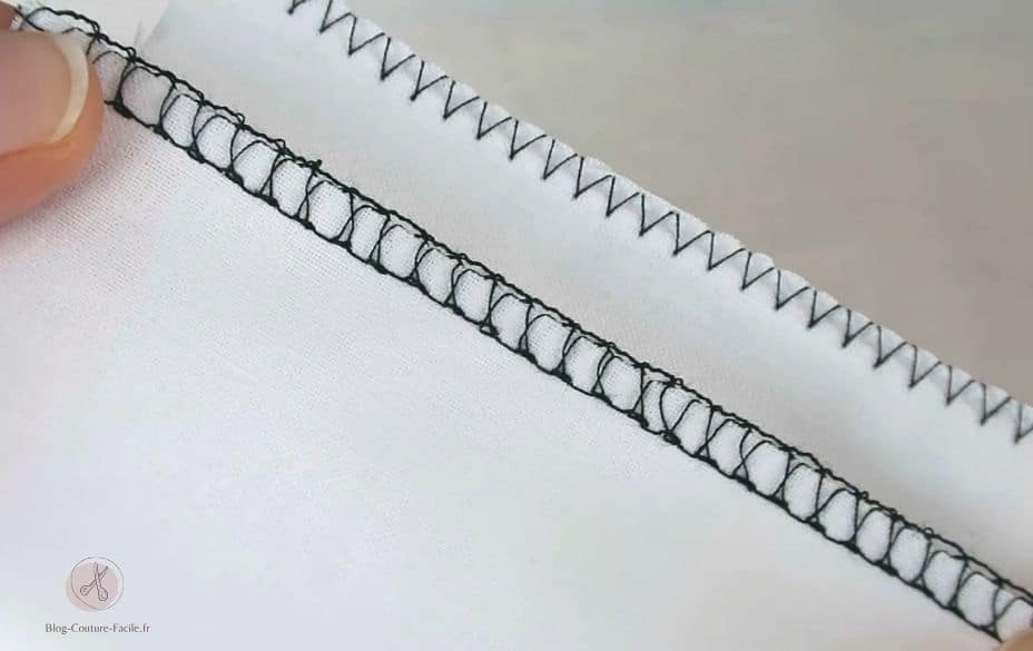 Si vous possédez une machine perfectionnée, je vous propose alors d’utiliser le point de surfilage de votre machine à coudre, encore appelé en anglais point overlock.