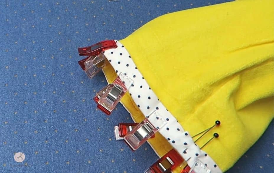 N’oubliez pas de placer la bande d’ourlet contre la couture du côté.