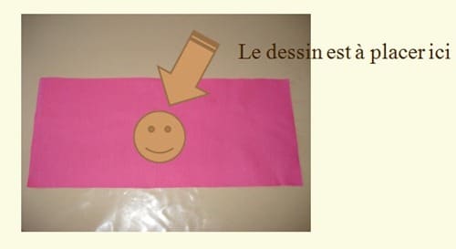 On plie,endroit contre endroit le tissu (le motif est donc à l’intérieur) :