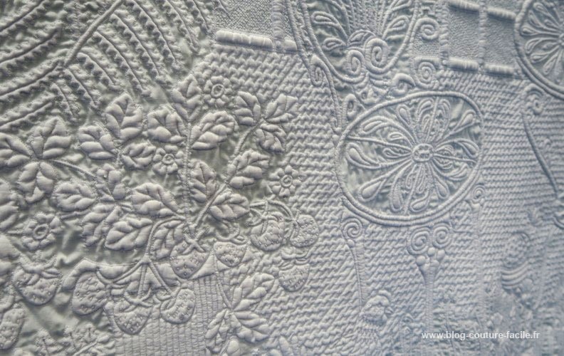C’est une broderie effectuée sur deux étoffes superposées, le dessin étant mis en relief par un bourrage.